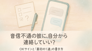 音信不通の彼に自分から連絡していいか迷うときの判断軸と、送ってもいい条件の見極め方を整理。直前の空気・彼の状況・自分の心の状態からOKサインを確認し、関係をこじらせない最初の1通の書き方や48時間ルール、つらい夜の応急処置まで解説します。