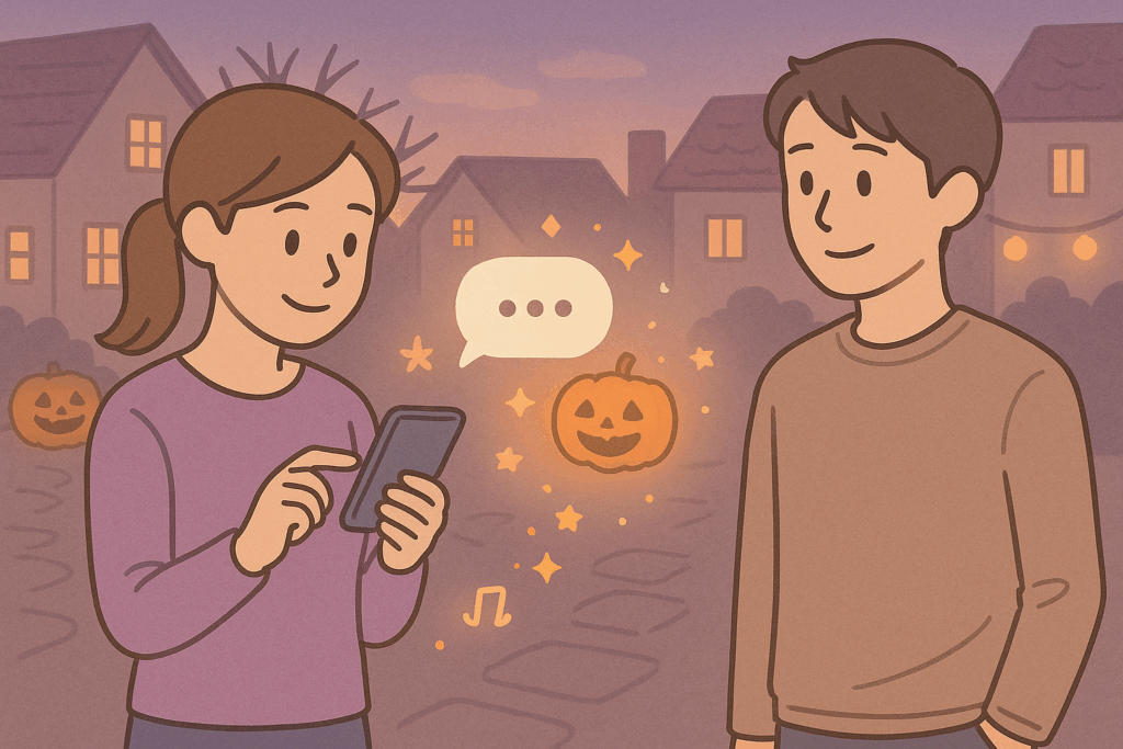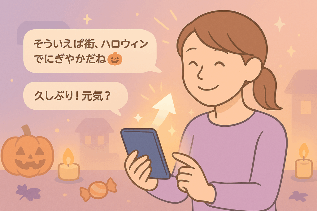 ハロウィンは恋人同士でなくても話題にしやすく、「街がにぎやか」「お菓子がかわいい」といった何気ない雑談として扱えます。