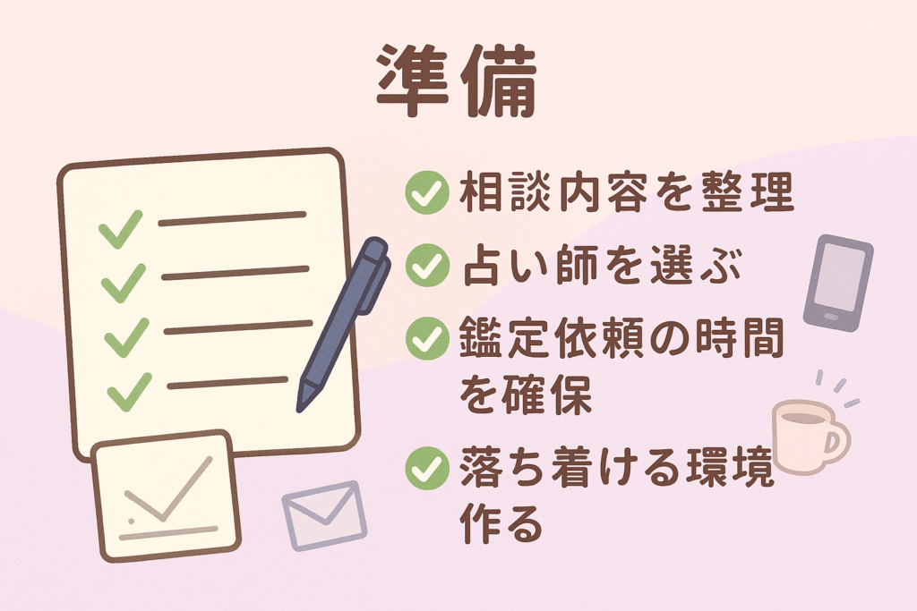 まとまらないまま伝えると「結局何を聞きたいのか分からない」となってしまい、せっかくの鑑定がぼんやりした答えで終わってしまうこともあります。