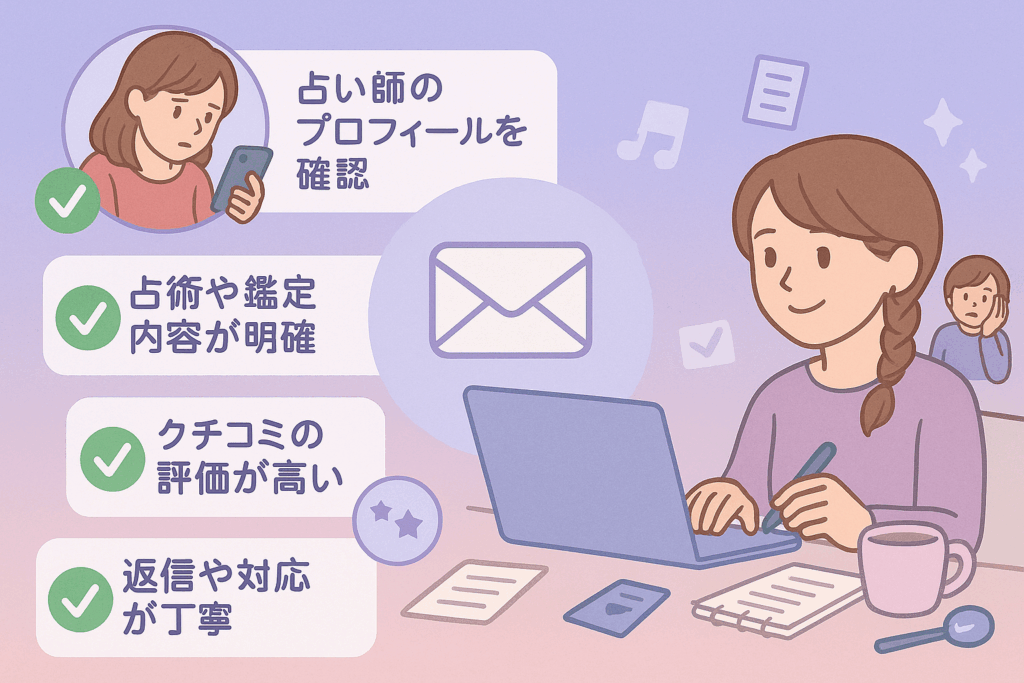 焦って選ぶよりも、「この先生なら信頼できそう」と思える人を見つけることが、納得がいくメール鑑定につながります。