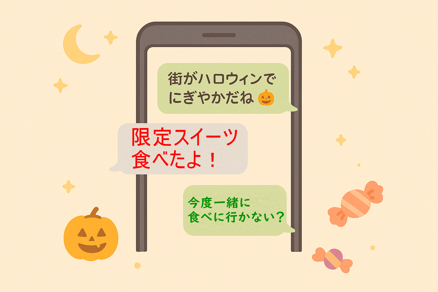 例えば「ハロウィン限定スイーツ、今度一緒に食べられたら楽しそうだね」と自然に広げることもできます。