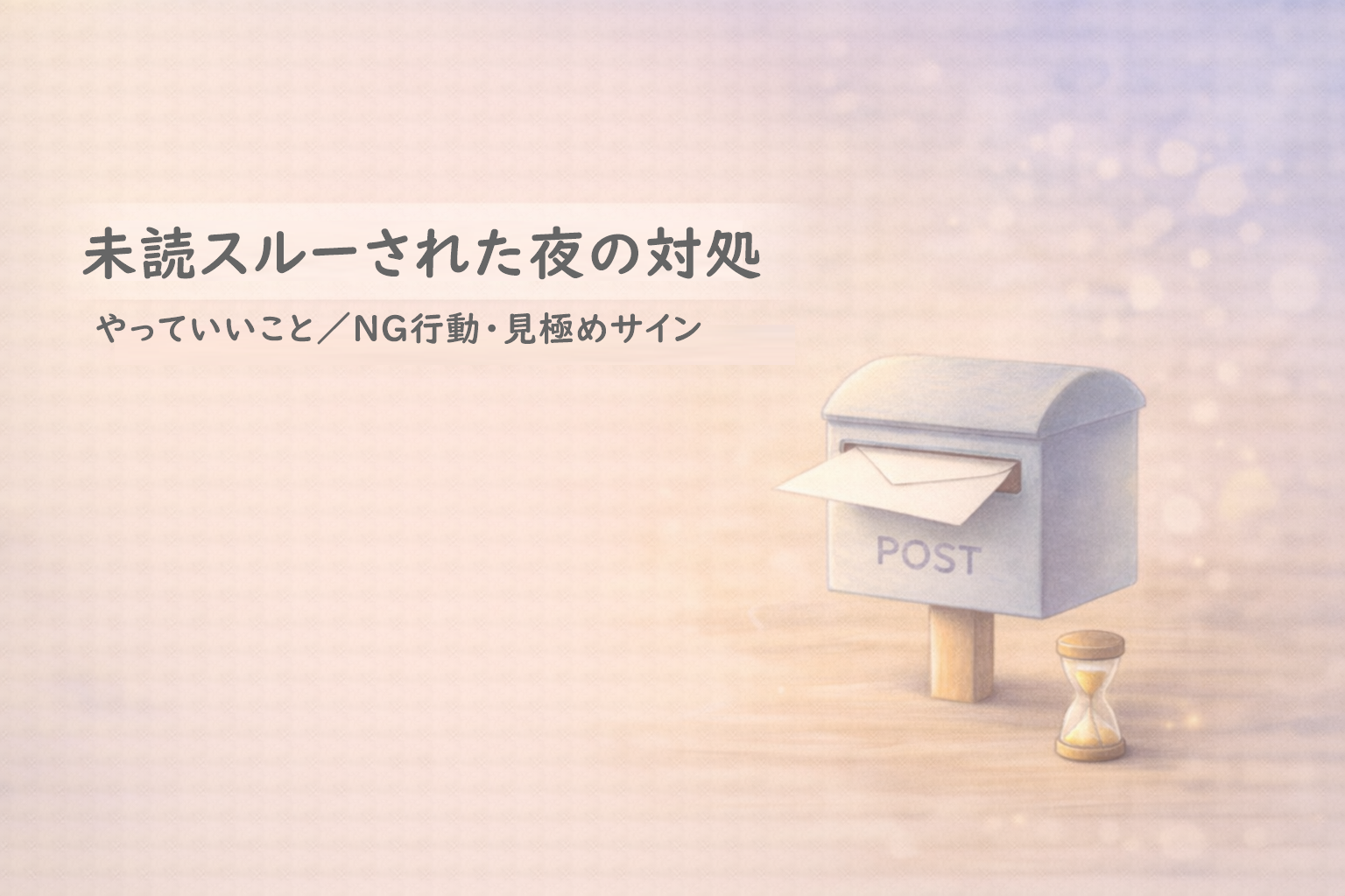 - 1〜3日 → 「もう1通送りたい気持ちの見直し」(「未読スルーが1〜3日続くときの向き合い方|もう1通送りたくなったときの見直しポイント」を参照)