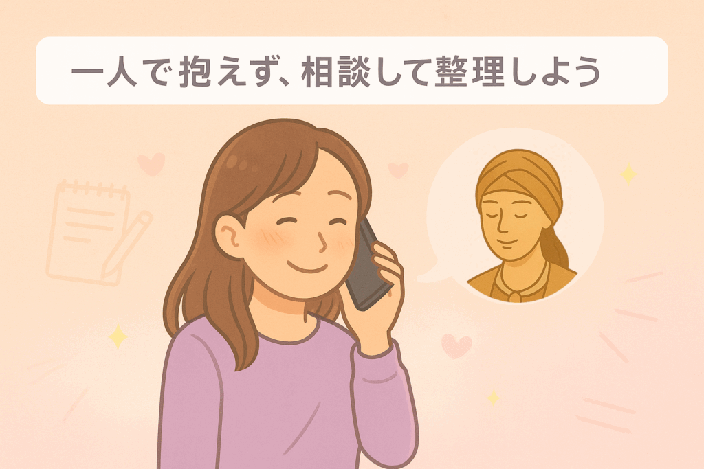 一人で考えていると不安や迷いが大きくなることもありますが、そんなときは第三者に相談して気持ちを整理するのも大切です。