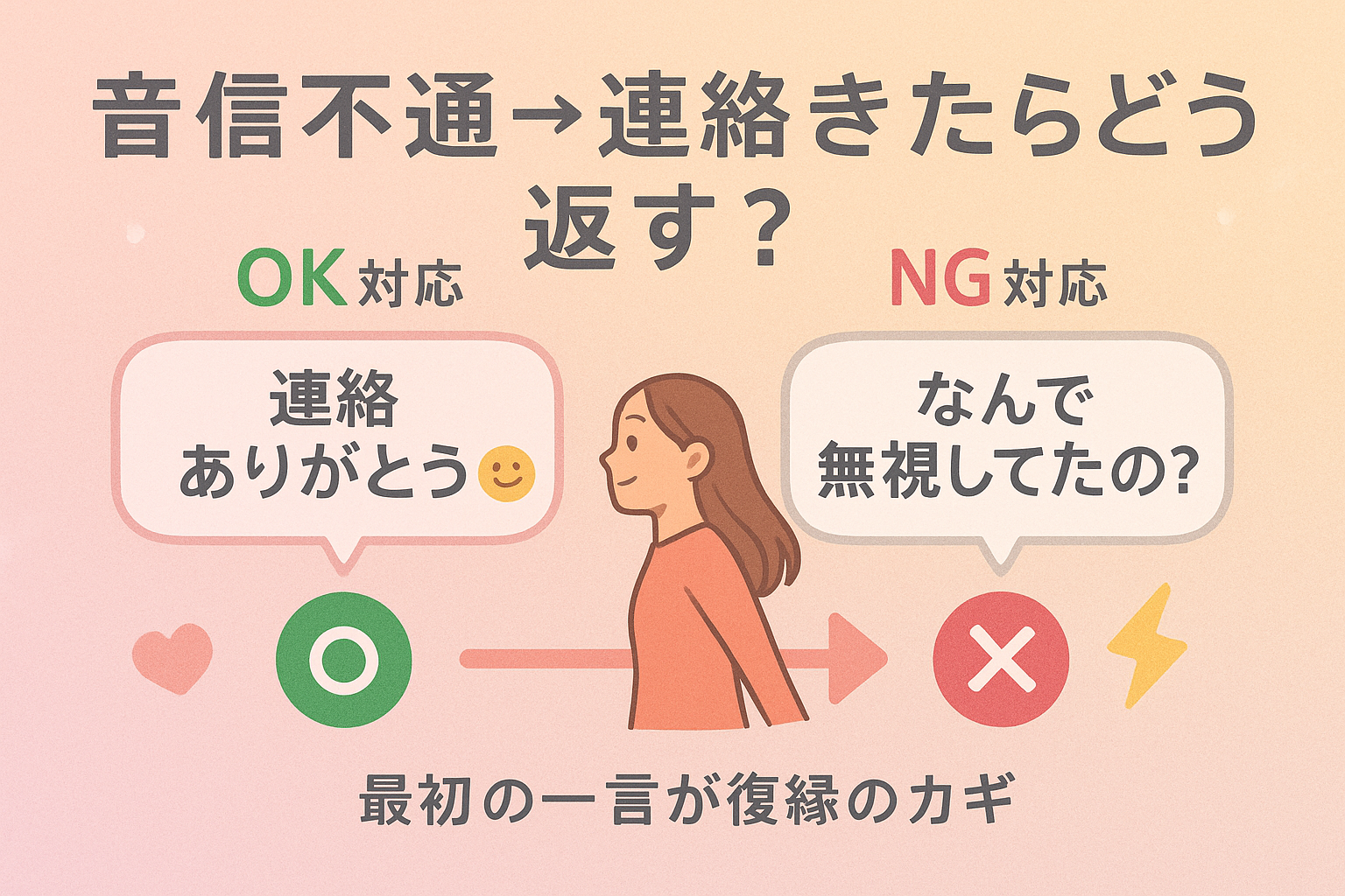 実際、音信不通の彼から連絡が来たときの“最初の対応”は、その後の関係が良い方向に進むかどうかを分ける大事なポイントなんです。