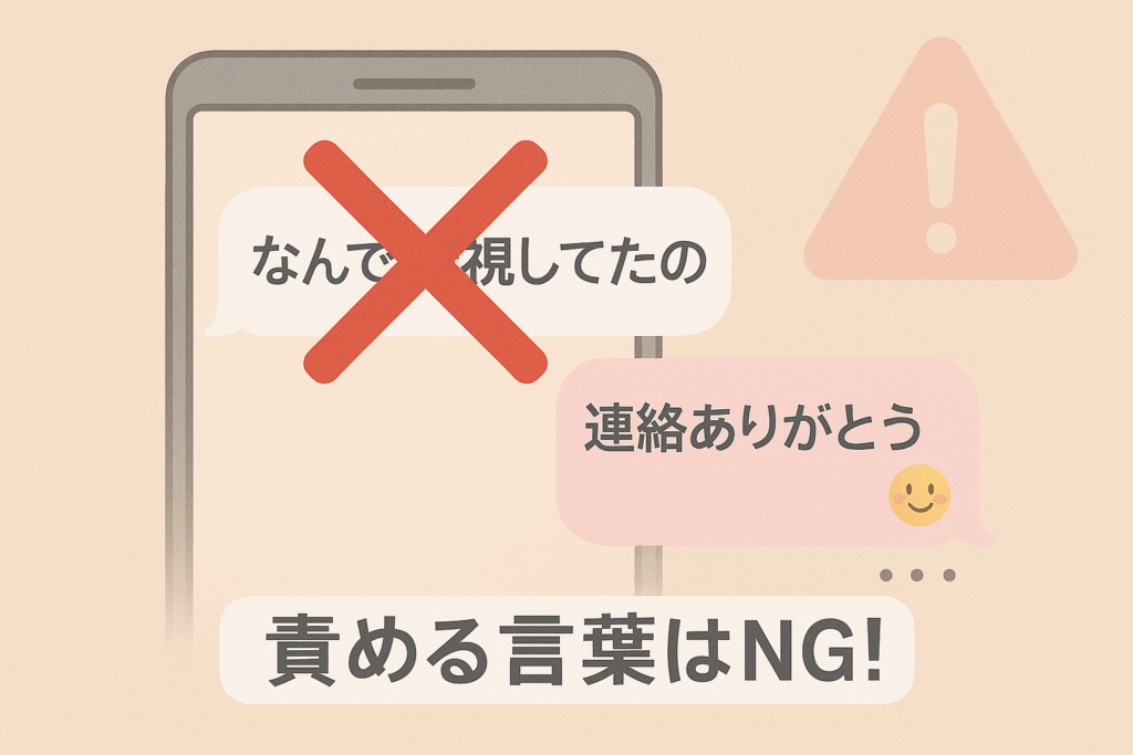 特に音信不通の後は、彼自身も「どう返したらいいか」と構えていることが多いので、重さのない話題で“安心の空気”を作ることがとても大切です。