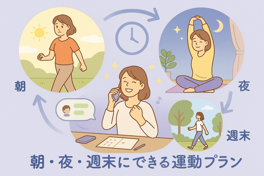 朝・夜・週末といった日常のタイミングに合わせて、少しずつ体を動かす習慣を持つことで、心のバランスも整いやすくなります。