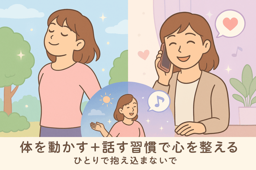 少し気持ちが落ち着いてきたら、外に出て軽く散歩をしたり、家で簡単なヨガを取り入れてみるのもおすすめです。